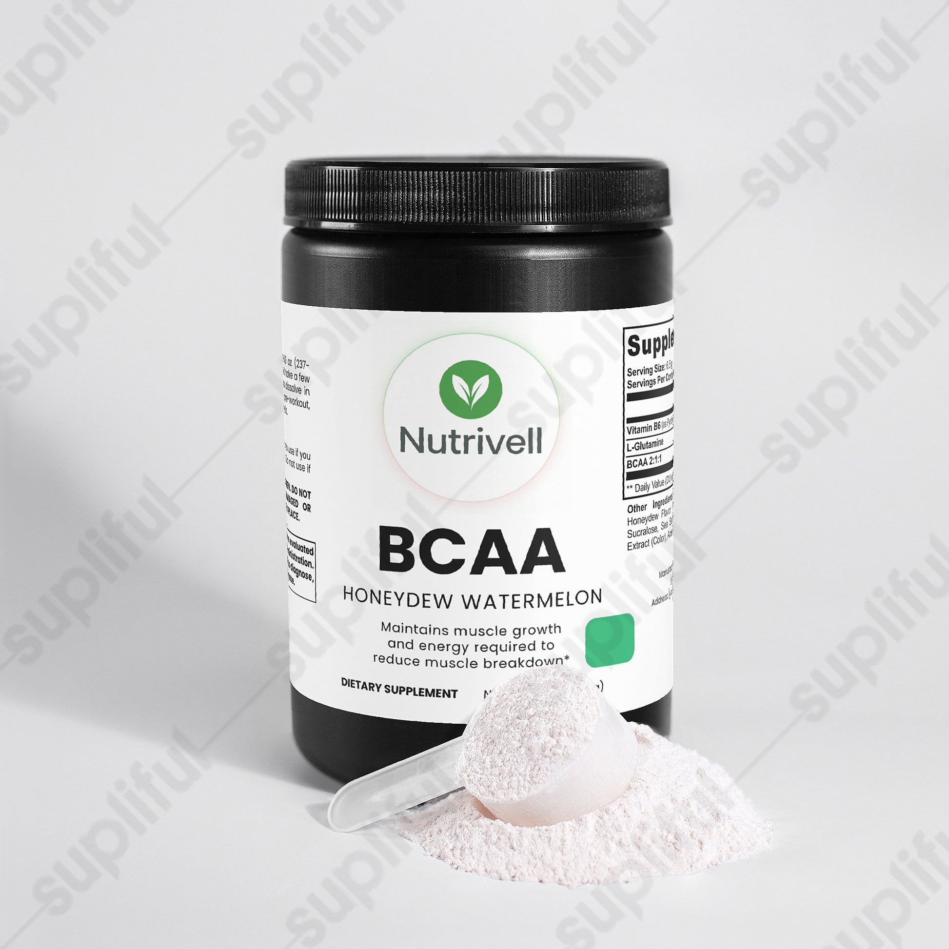 Ingredients: Vitamin B6 (as Pyridoxine Hydrochloride), L-Glutamine, BCAA 2:1:1, Citric Acid, Honeydew Flavor, Watermelon Flavor, Potassium Citrate, Silicon Dioxide, Sucralose, Sea Salt, Beet Powder (Color), Grape Skin Extract (Color), Acesulfame Potassium.